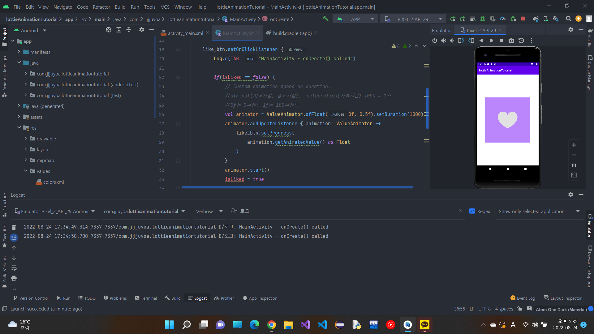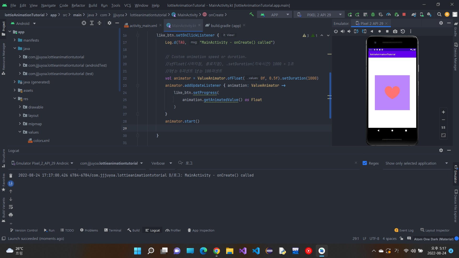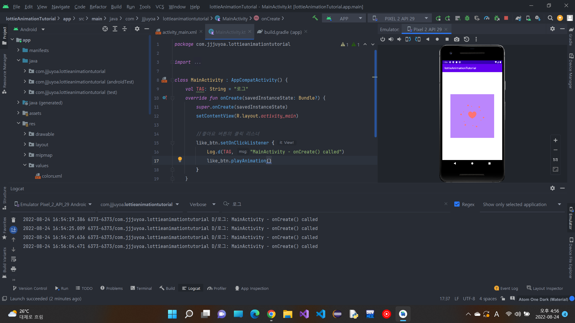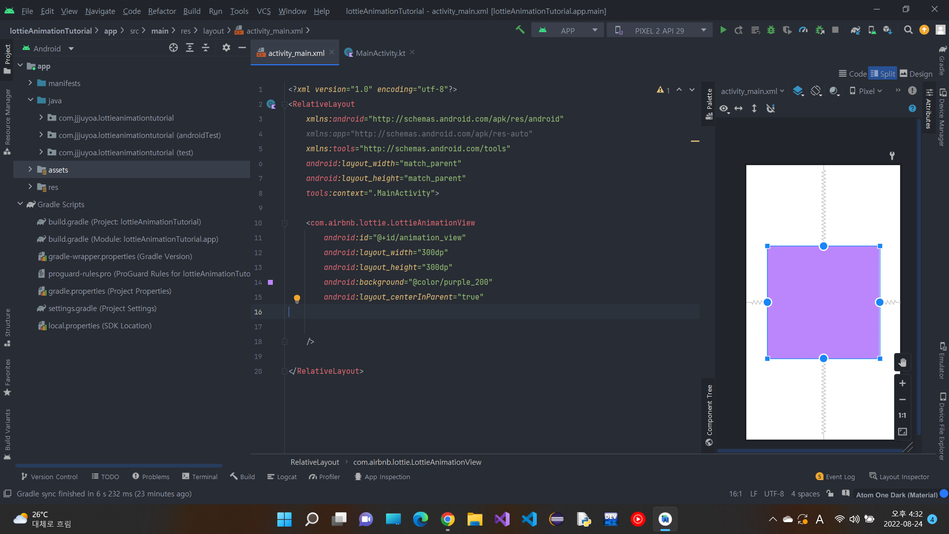 (주석부분이랑 그 바로위에 app:lottie_rawRes="@raw/hello_world"는 지워줍시다!)