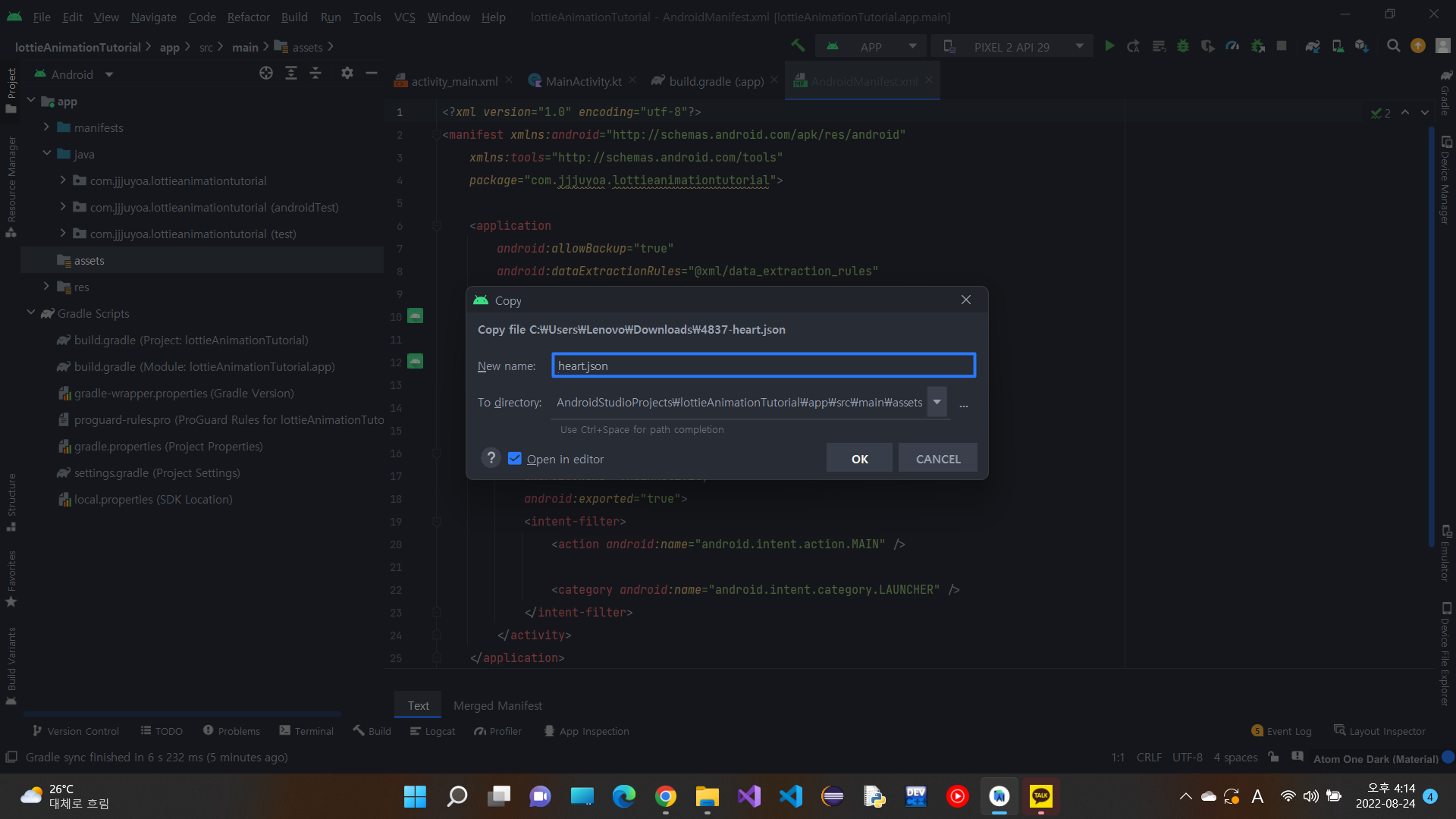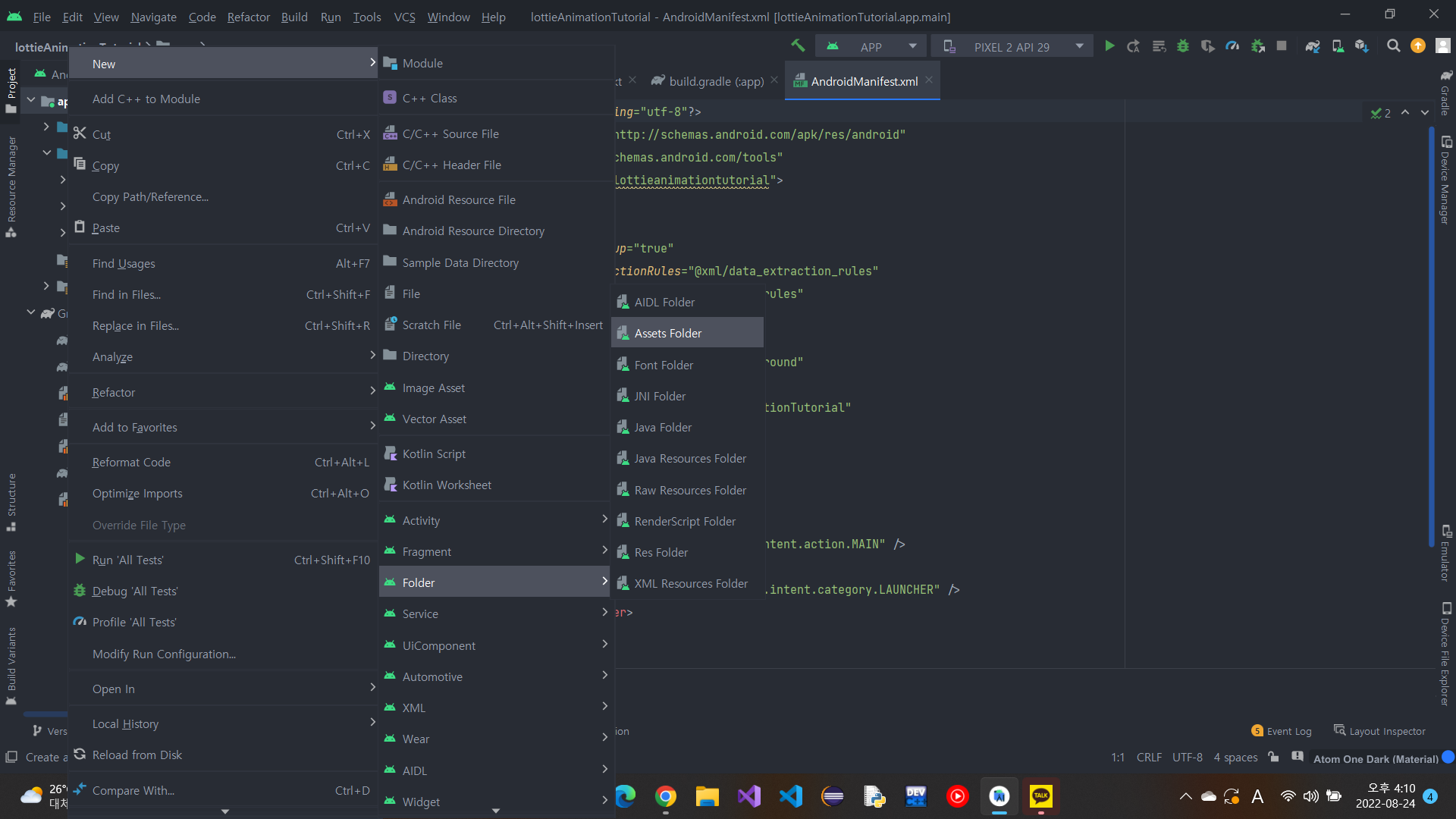 애니메이션을 다운(JSON파일) 받구 이제 안드로이드 스튜디오에서 엑티비티를 만들어야겠죠?