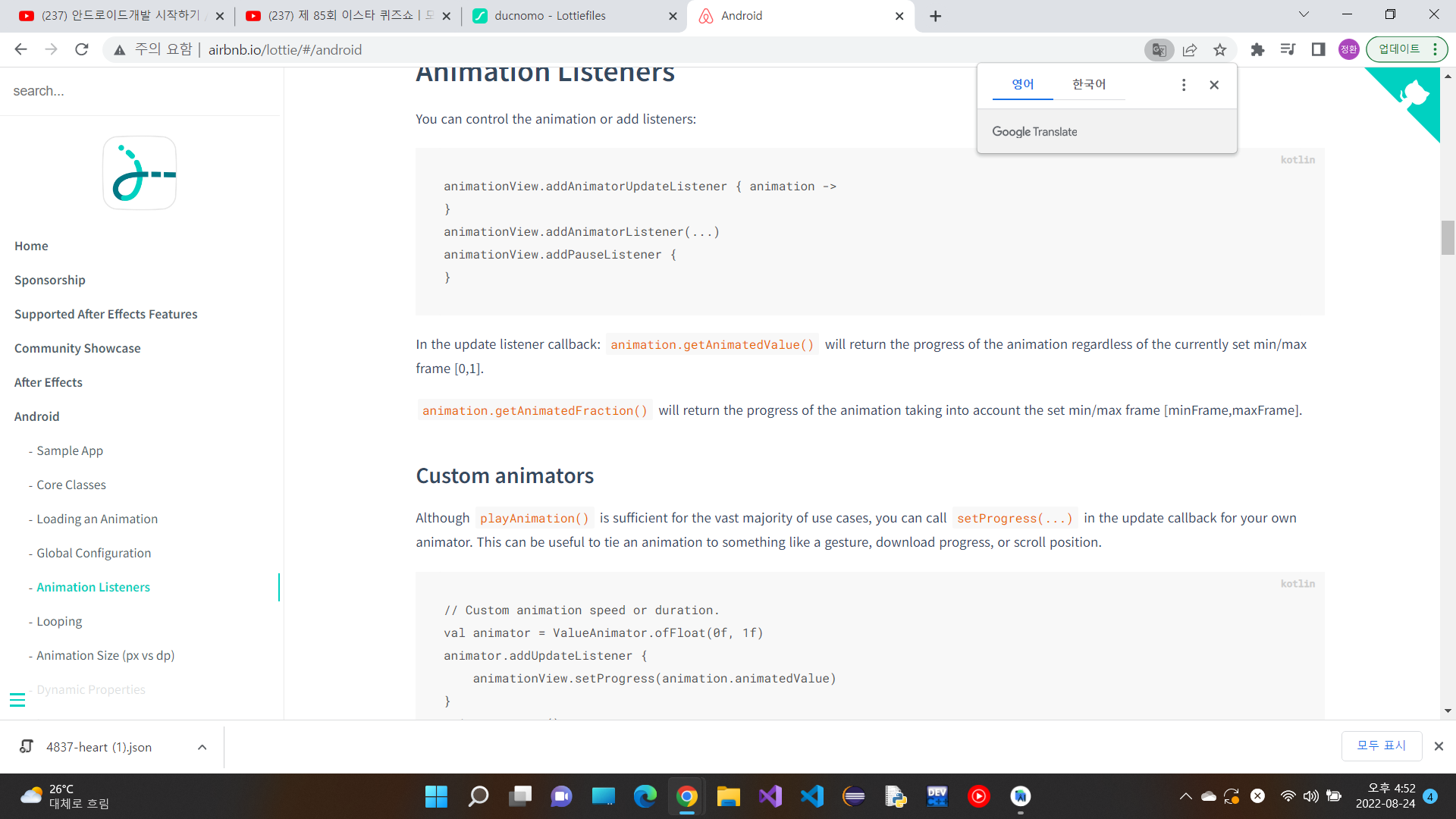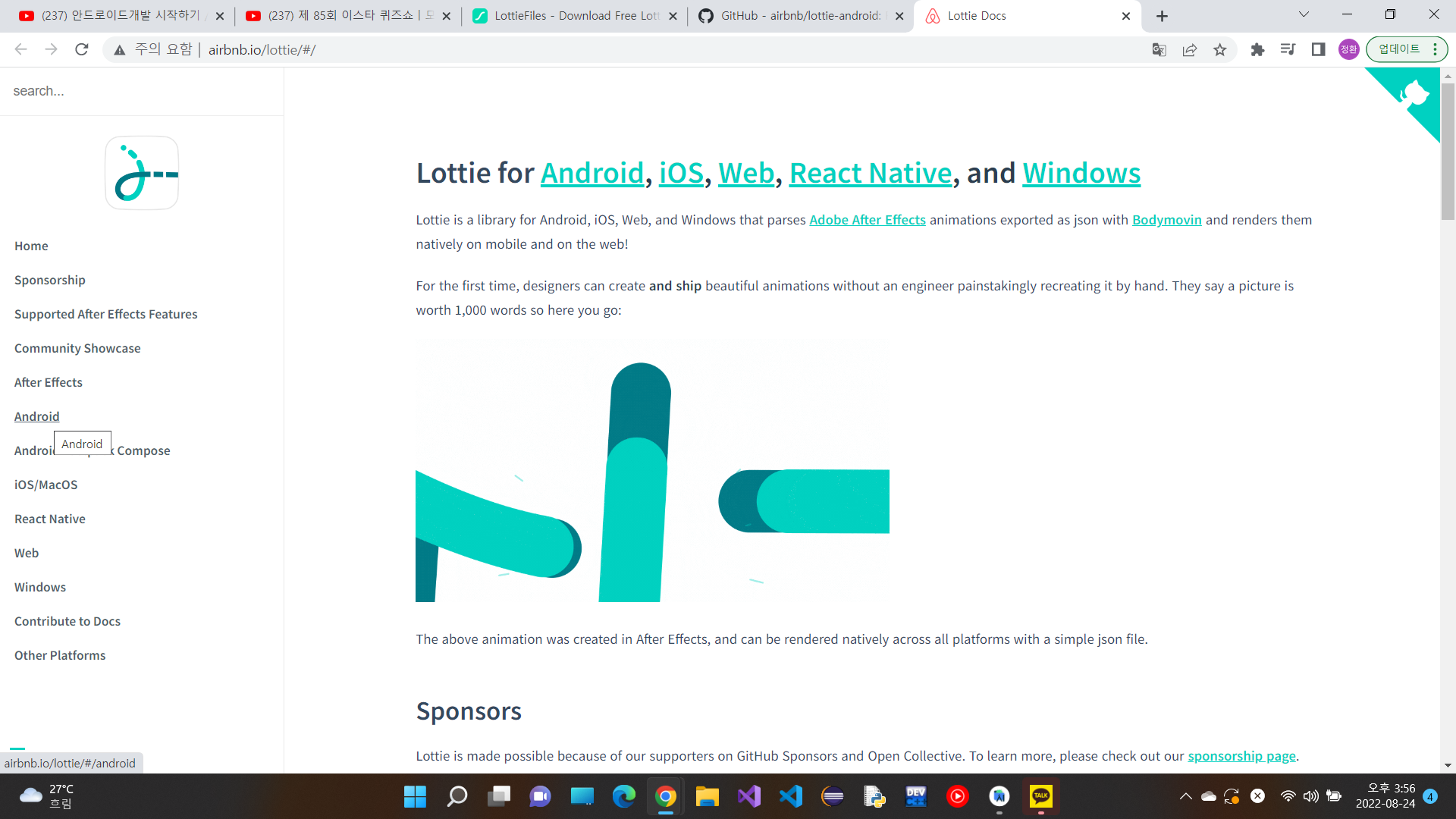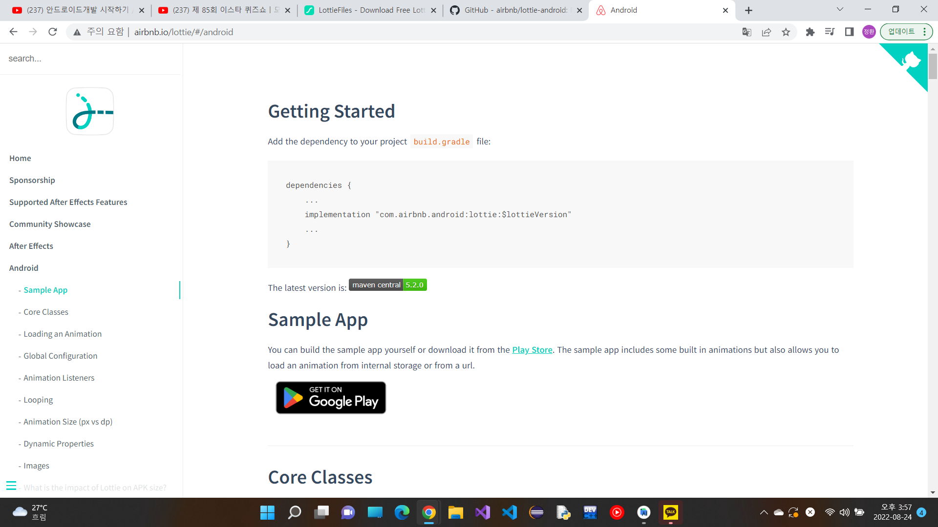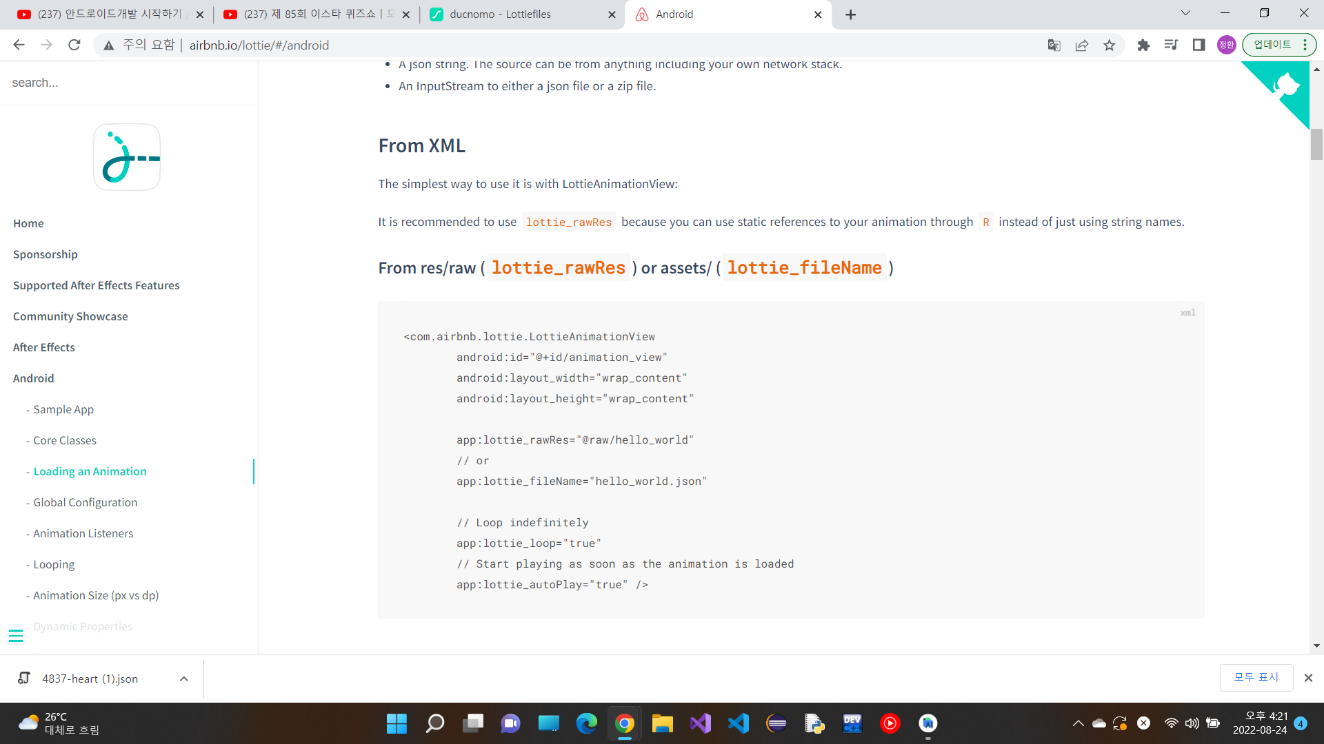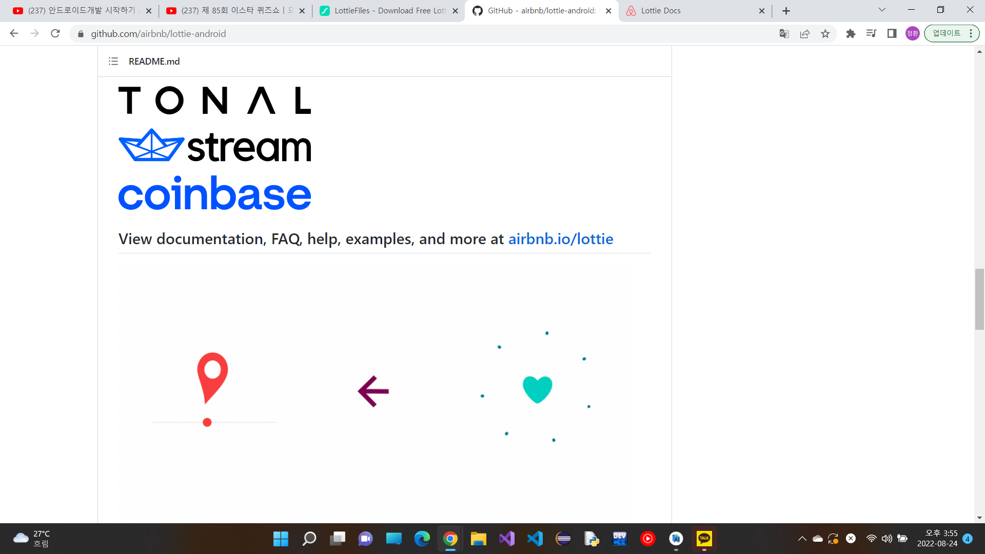 우선 구글에 lottieanimation git을 들어가고 홈페이지를 내리다보면
